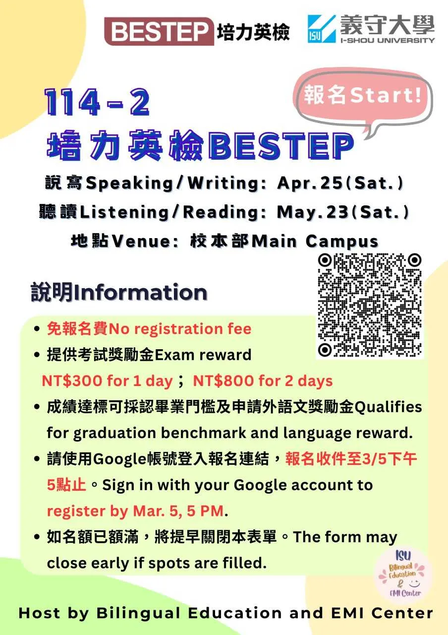 114-2「培力英檢(BESTEP)」免費報名中 Free Registration Now Open!